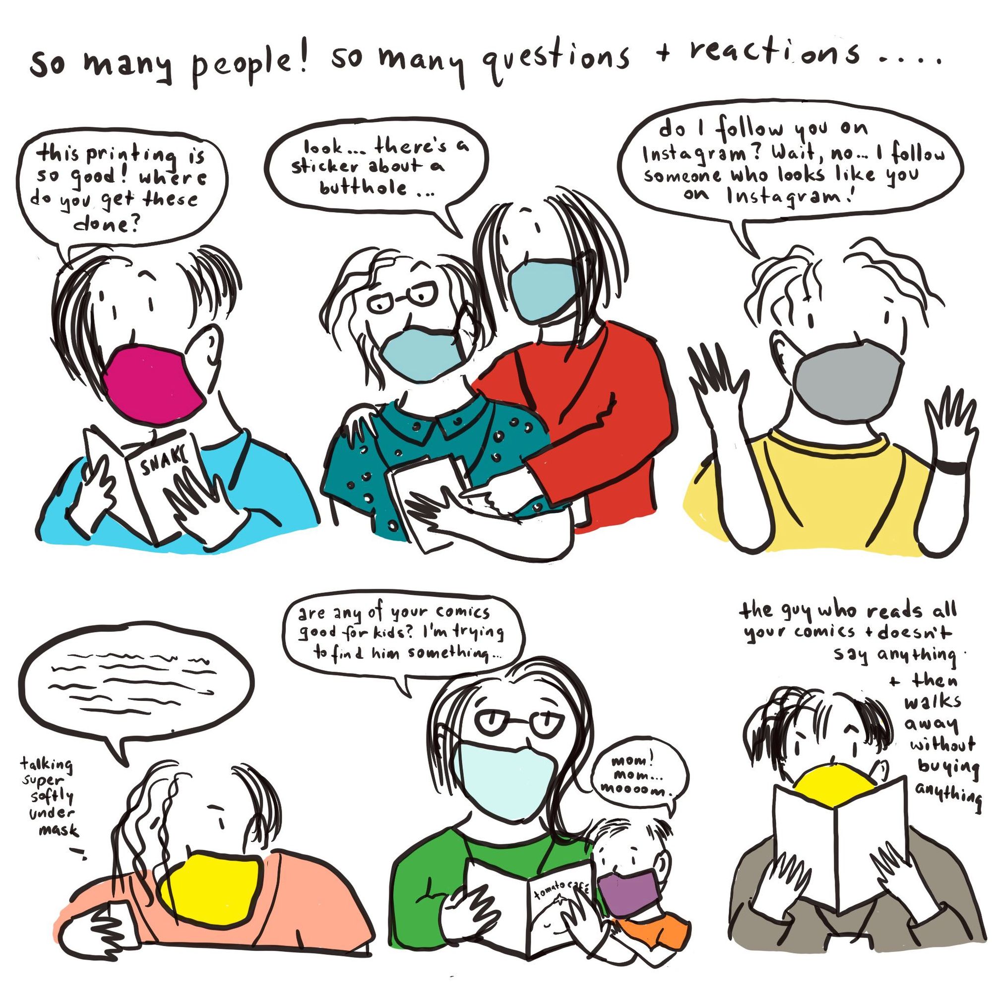 The two comics I drew this summer and got printed for SPX are now up in my Etsy store! Snake of the Day is 32 pages of snakes with feelings and Tomato Cafe will make you feel great about cafes again.